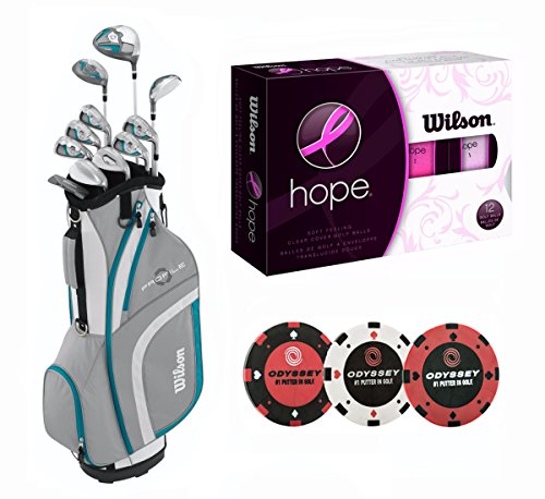 mode : Wilson Complete Women's Petite Golf Set (Teal Blue, Right Hand) with Hope Distance Golf Balls (Pink, 12-Pack) & Poker Chip Ball Markers (3-Pack)